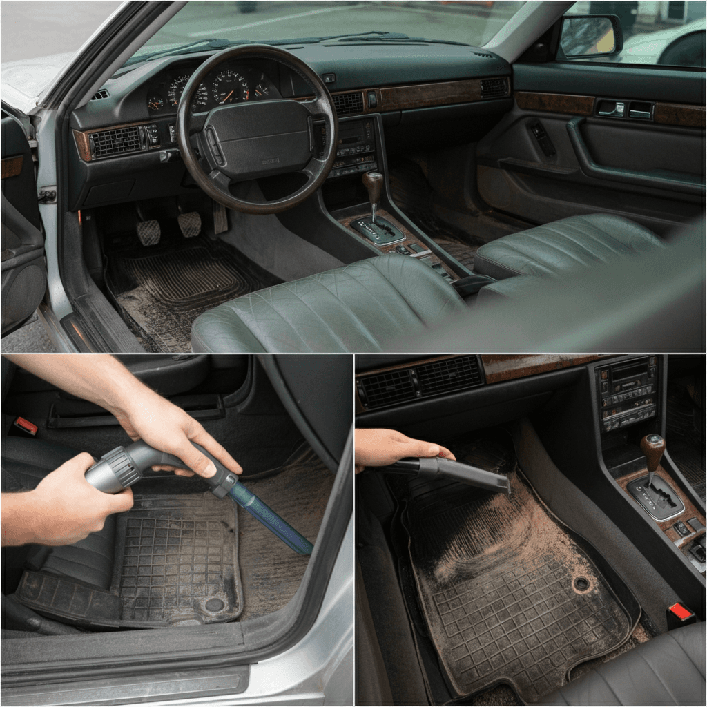 100アバントは第一印象が査定の8割を決めます。シート隙間のゴミ除去、マット洗浄、樹脂パーツ艶出しで新車級の清潔感に。特に臭いゼロなら「禁煙車」扱いで+5~8万円UP。