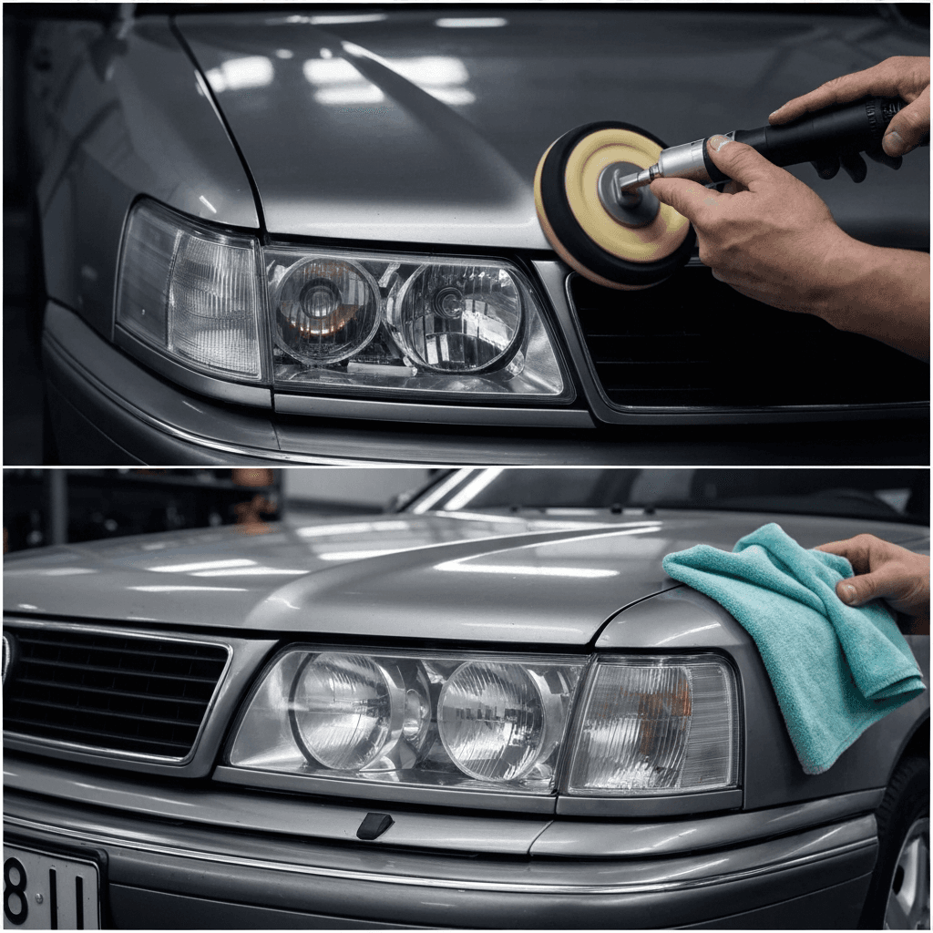100アバントはヘッドライトの黄ばみとボディの鉄粉が第一印象を損ねます。研磨+鉄粉除去クリーナー+ワックスで輝きを取り戻せば「程度良好」と判断され+4~7万円の効果。