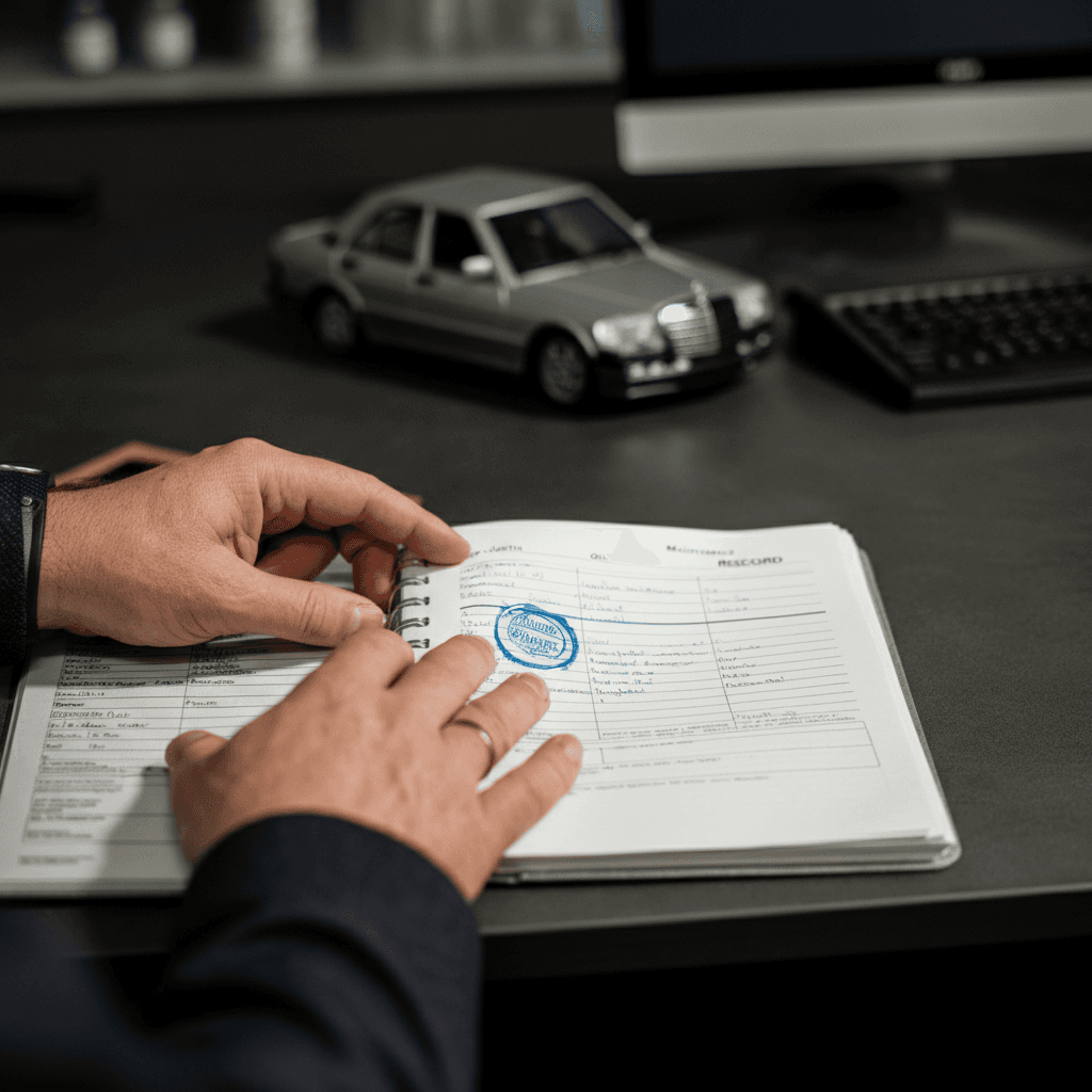 190クラスの整備記録簿に定期点検(12ヶ月・24ヶ月)の履歴が全て記載されていれば「管理の行き届いた車」と高評価。特にエンジンオイル交換履歴は重要で+6~9万円の効果。