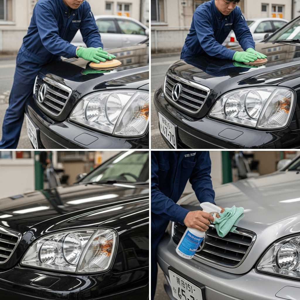 190クラスはヘッドライトの黄ばみとボディの鉄粉が第一印象を損ねます。研磨+鉄粉除去クリーナー+ワックスで輝きを取り戻せば「程度良好」と判断され+4~7万円の効果。
