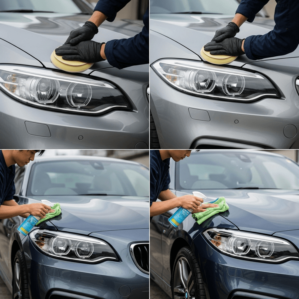 2シリーズクーペはヘッドライトの黄ばみとボディの鉄粉が第一印象を損ねます。研磨+鉄粉除去クリーナー+ワックスで輝きを取り戻せば「程度良好」と判断され+4~7万円の効果。