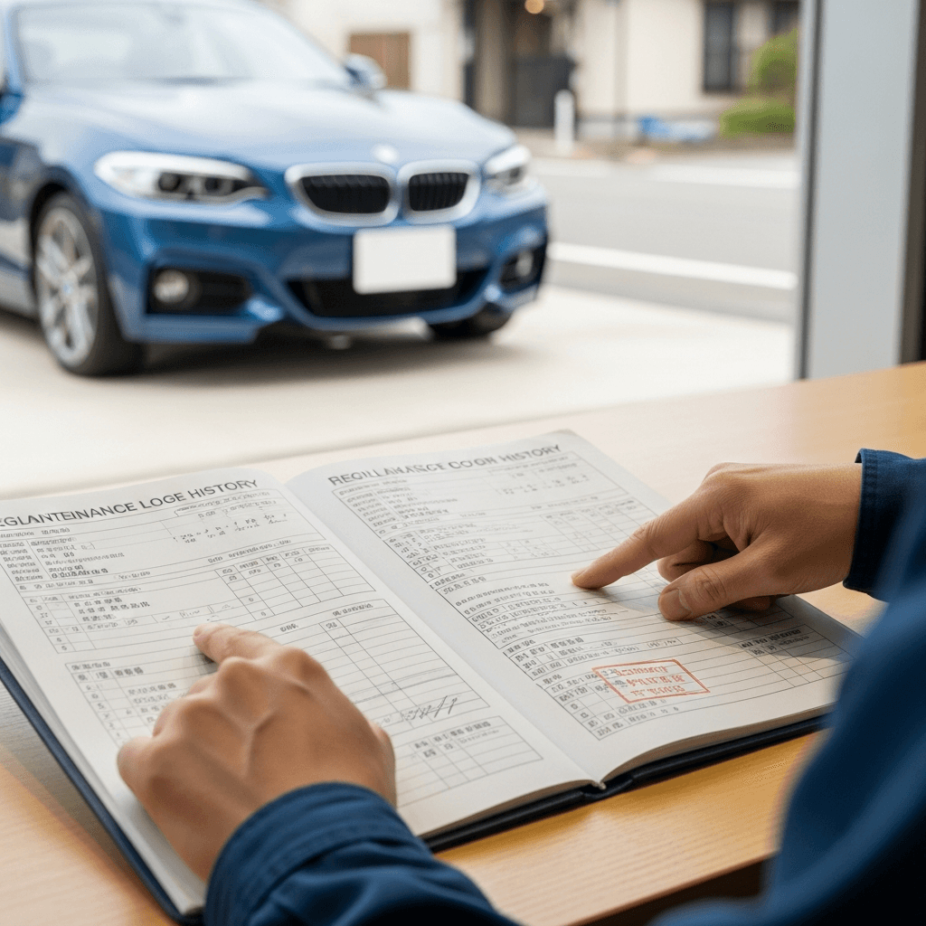 2シリーズクーペの整備記録簿に定期点検(12ヶ月・24ヶ月)の履歴が全て記載されていれば「管理の行き届いた車」と高評価。特にエンジンオイル交換履歴は重要で+6~9万円の効果。
