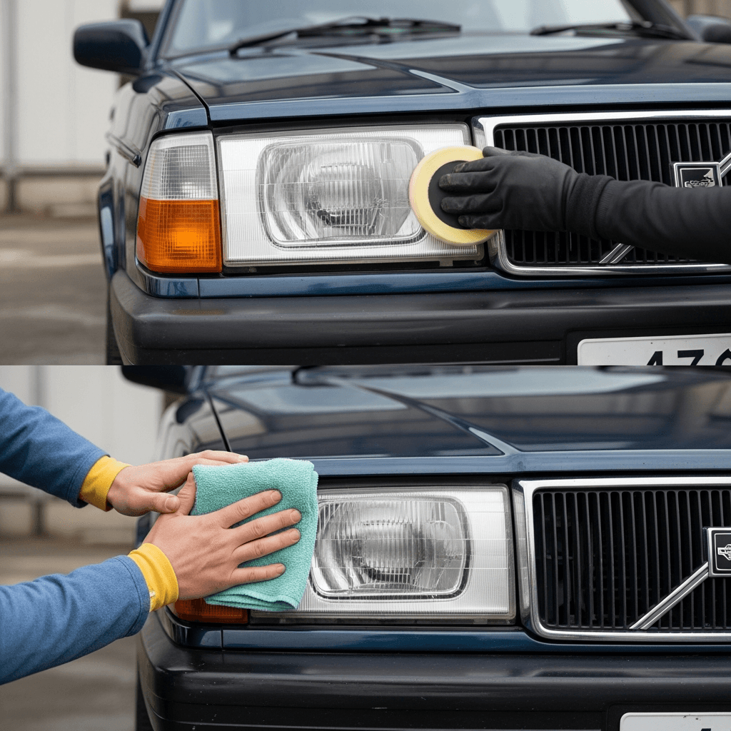 ヘッドライト黄ばみ除去+ボディ鉄粉除去で輝き復活!