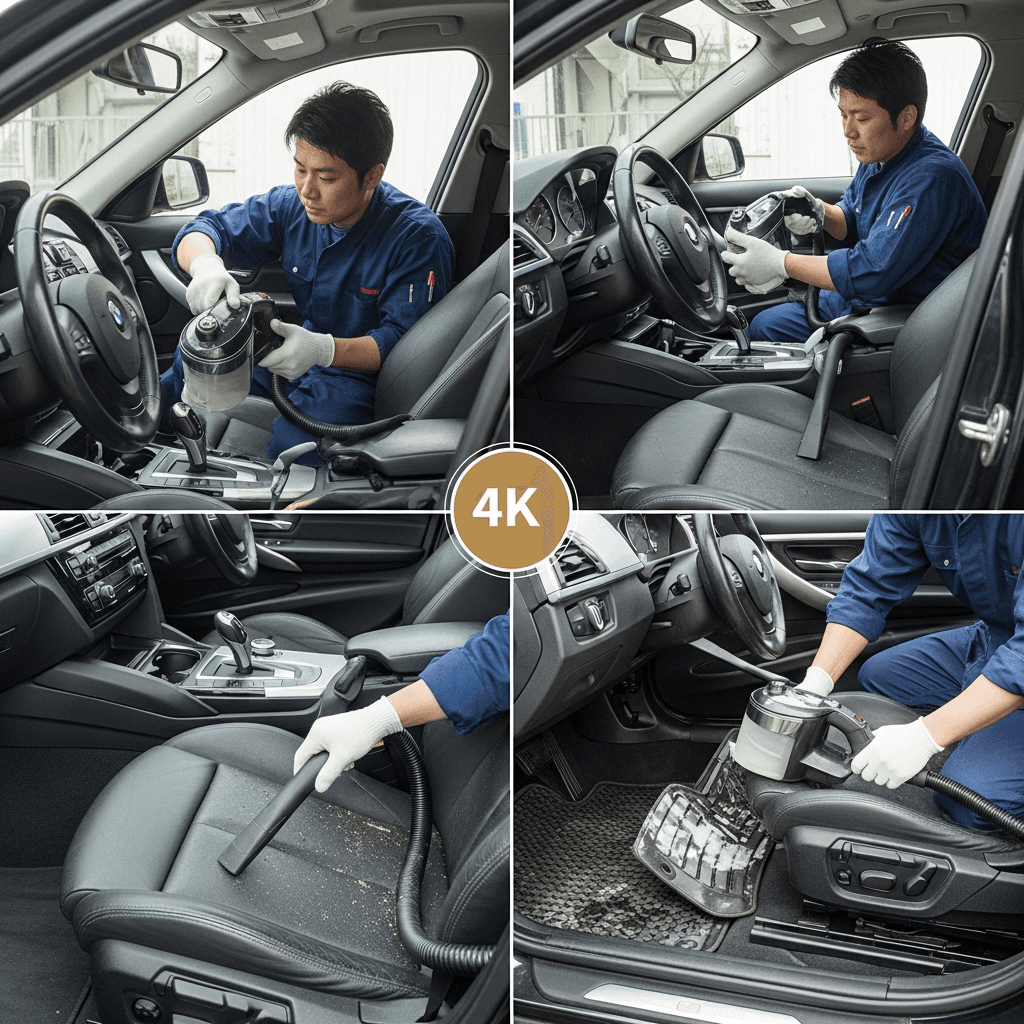 3シリーズは第一印象が査定の8割を決めます。シート隙間のゴミ除去、マット洗浄、樹脂パーツ艶出しで新車級の清潔感に。特に臭いゼロなら「禁煙車」扱いで+5~8万円UP。