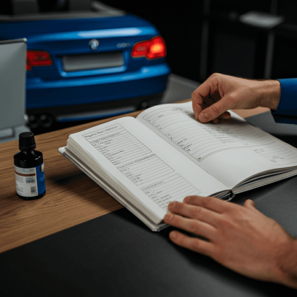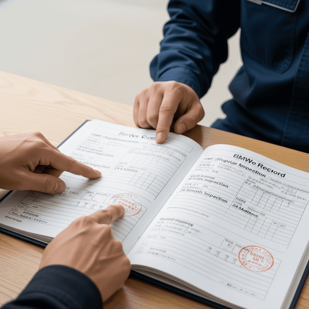 3シリーズカブリオレの整備記録簿に定期点検(12ヶ月・24ヶ月)の履歴が全て記載されていれば「管理の行き届いた車」と高評価。特にエンジンオイル交換履歴は重要で+6~9万円の効果。