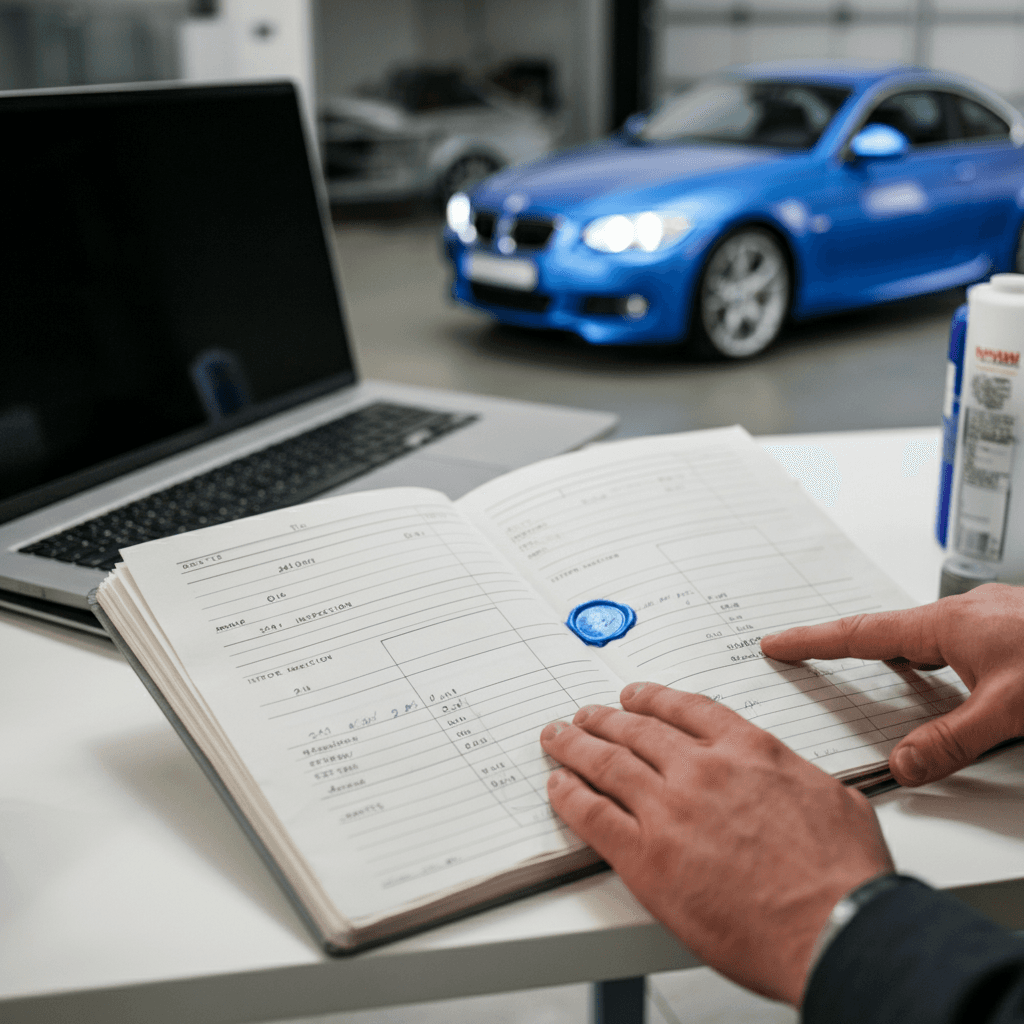 3シリーズクーペの整備記録簿に定期点検(12ヶ月・24ヶ月)の履歴が全て記載されていれば「管理の行き届いた車」と高評価。特にエンジンオイル交換履歴は重要で+6~9万円の効果。