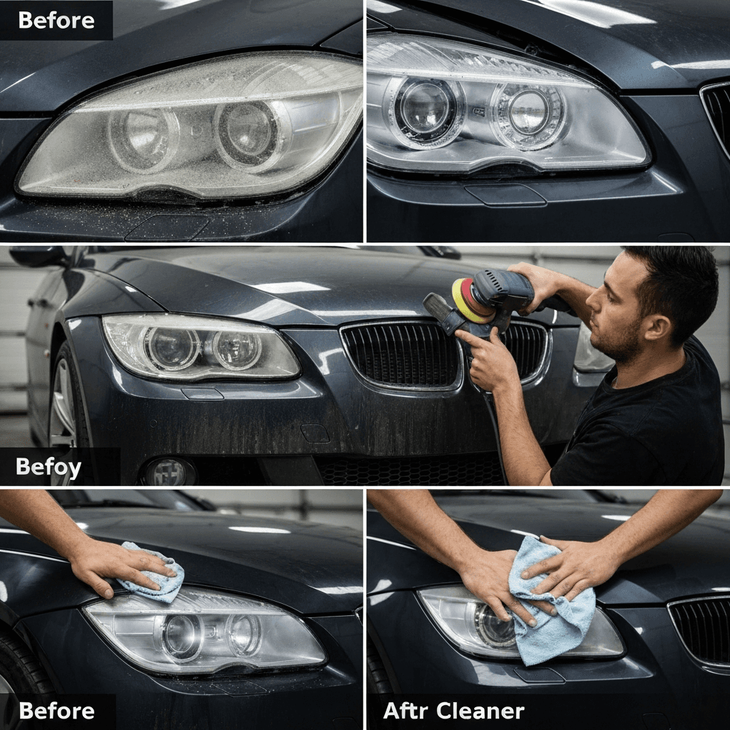 3シリーズクーペはヘッドライトの黄ばみとボディの鉄粉が第一印象を損ねます。研磨+鉄粉除去クリーナー+ワックスで輝きを取り戻せば「程度良好」と判断され+4~7万円の効果。