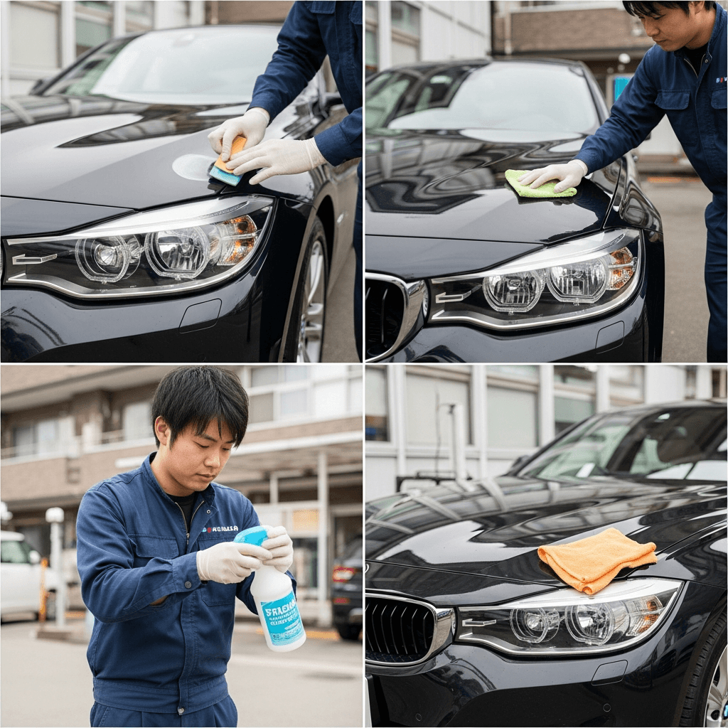 3シリーズグランツーリスモはヘッドライトの黄ばみとボディの鉄粉が第一印象を損ねます。研磨+鉄粉除去クリーナー+ワックスで輝きを取り戻せば「程度良好」と判断され+4~7万円の効果。