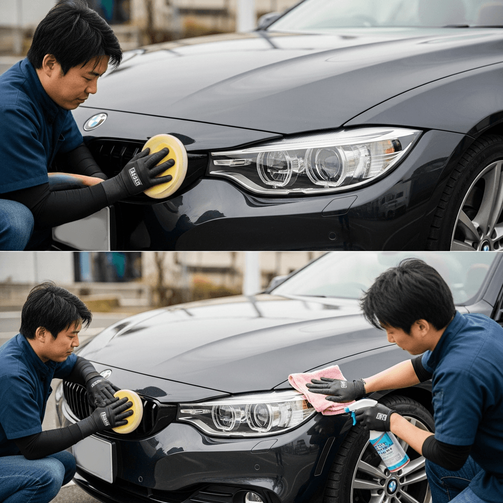 4シリーズカブリオレはヘッドライトの黄ばみとボディの鉄粉が第一印象を損ねます。研磨+鉄粉除去クリーナー+ワックスで輝きを取り戻せば「程度良好」と判断され+4~7万円の効果。