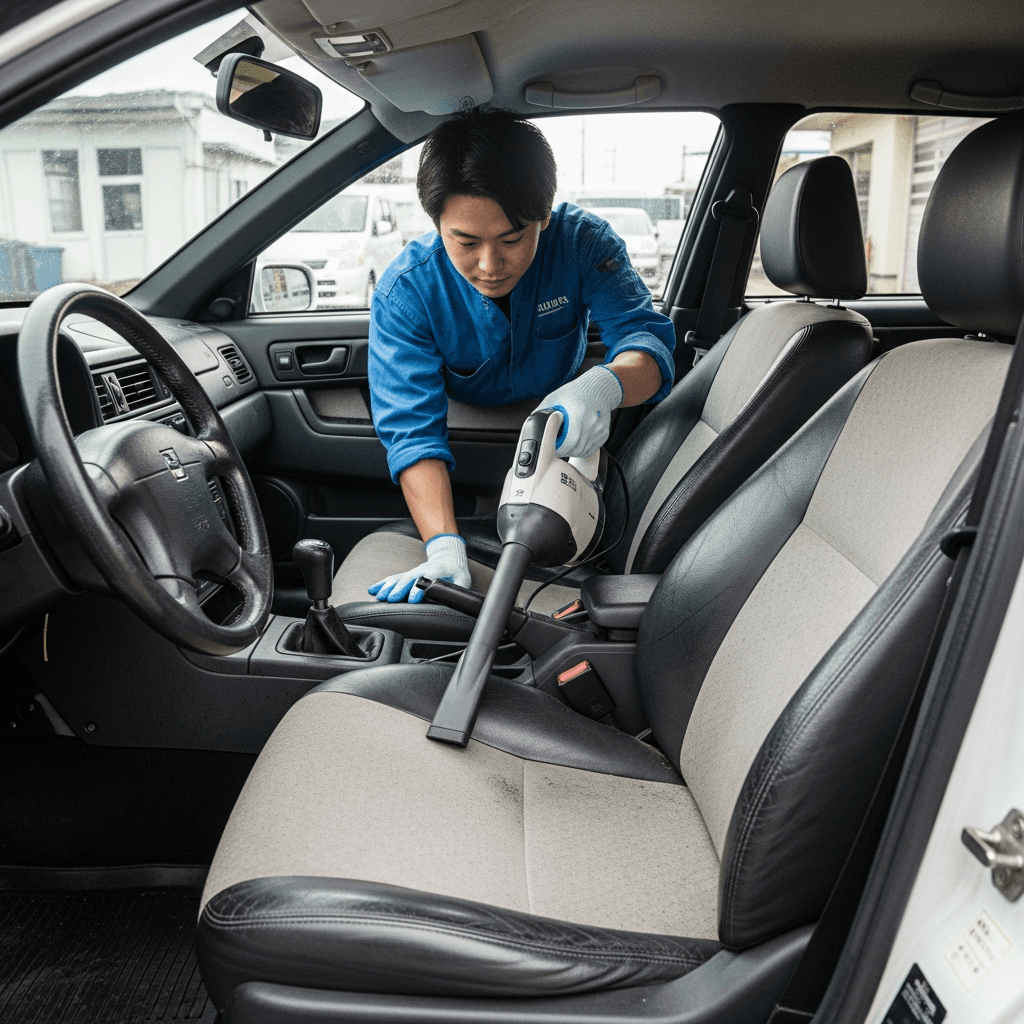 480は第一印象が査定の8割を決めます。シート隙間のゴミ除去、マット洗浄、樹脂パーツ艶出しで新車級の清潔感に。特に臭いゼロなら「禁煙車」扱いで+5~8万円UP。