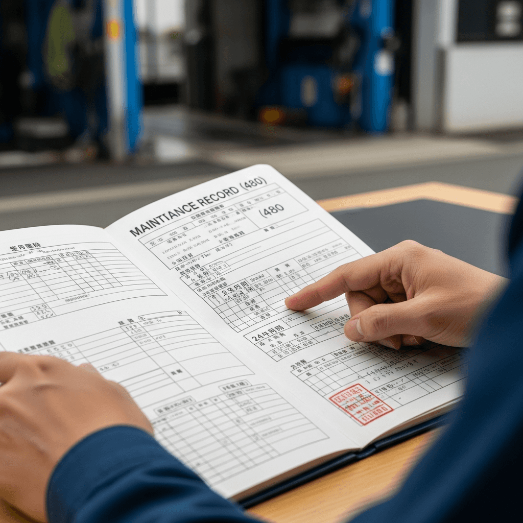 480の整備記録簿に定期点検(12ヶ月・24ヶ月)の履歴が全て記載されていれば「管理の行き届いた車」と高評価。特にエンジンオイル交換履歴は重要で+6~9万円の効果。