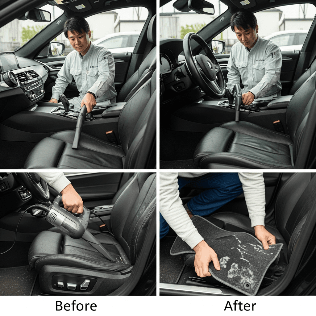 5シリーズグランツーリスモは第一印象が査定の8割を決めます。シート隙間のゴミ除去、マット洗浄、樹脂パーツ艶出しで新車級の清潔感に。特に臭いゼロなら「禁煙車」扱いで+5~8万円UP。