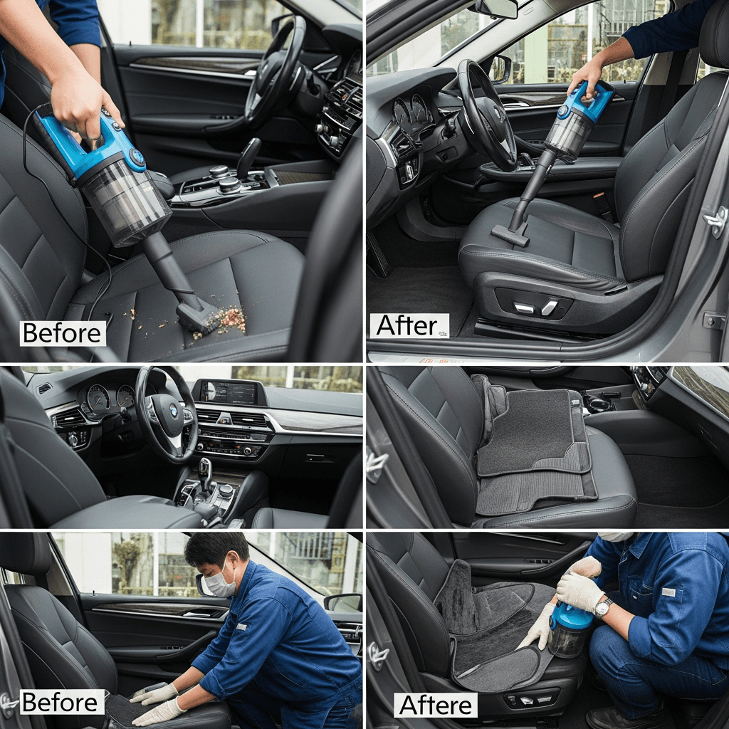 5シリーズツーリングは第一印象が査定の8割を決めます。シート隙間のゴミ除去、マット洗浄、樹脂パーツ艶出しで新車級の清潔感に。特に臭いゼロなら「禁煙車」扱いで+5~8万円UP。