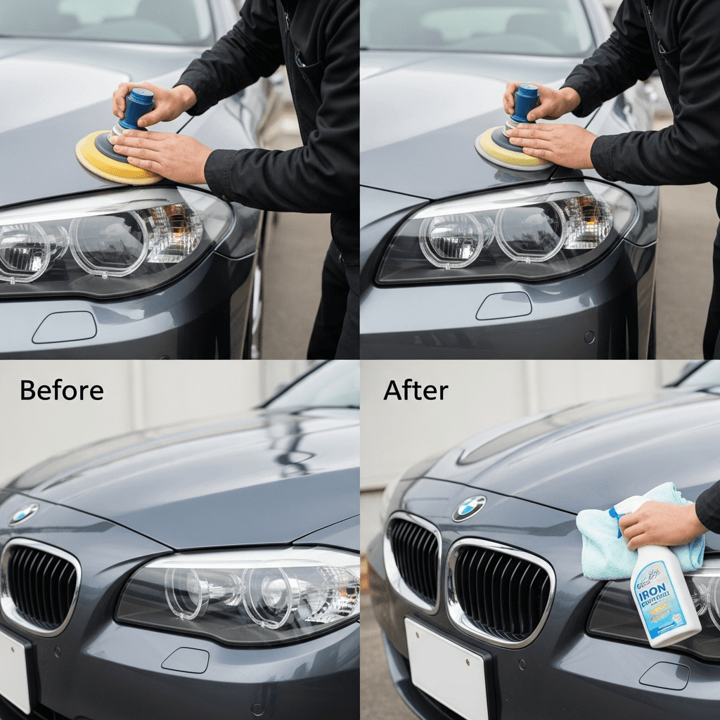 ヘッドライト黄ばみ除去+ボディ鉄粉除去で輝き復活!