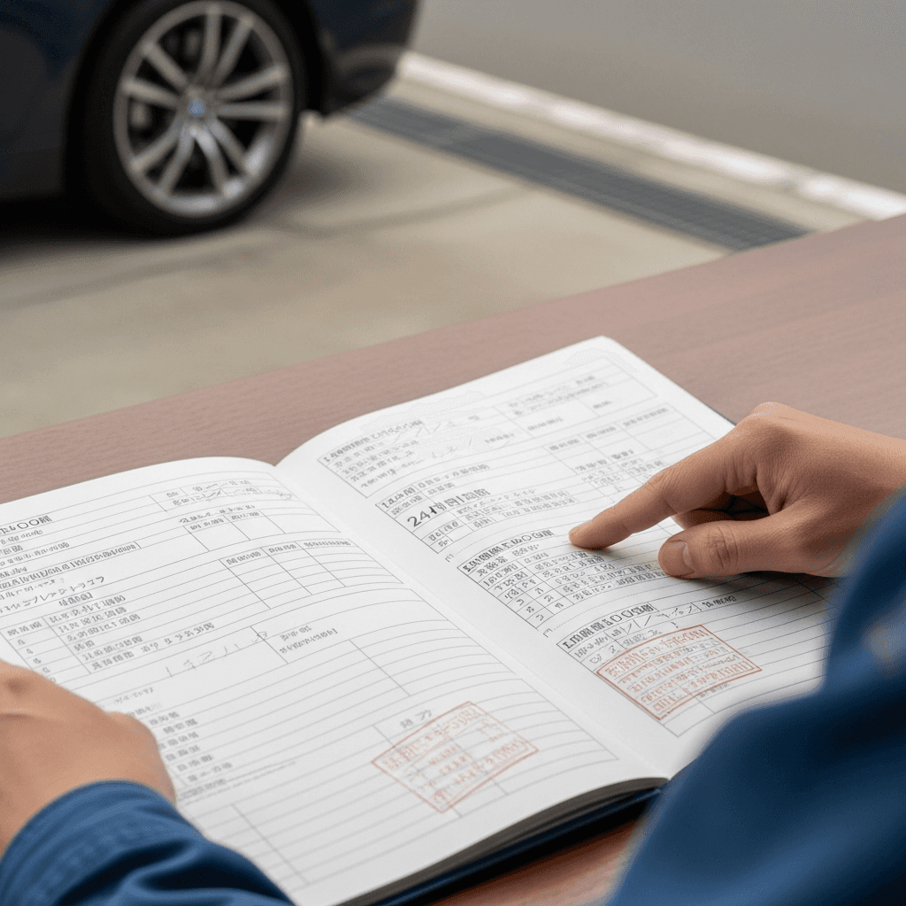 5シリーズツーリングの整備記録簿に定期点検(12ヶ月・24ヶ月)の履歴が全て記載されていれば「管理の行き届いた車」と高評価。特にエンジンオイル交換履歴は重要で+6~9万円の効果。