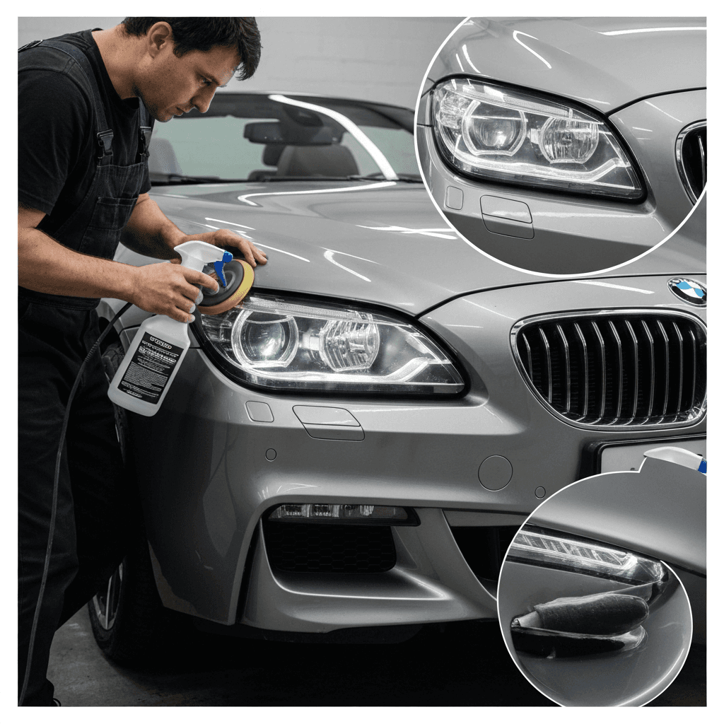 6シリーズカブリオレはヘッドライトの黄ばみとボディの鉄粉が第一印象を損ねます。研磨+鉄粉除去クリーナー+ワックスで輝きを取り戻せば「程度良好」と判断され+4~7万円の効果。