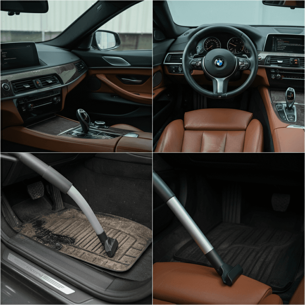 6シリーズグランクーペは第一印象が査定の8割を決めます。シート隙間のゴミ除去、マット洗浄、樹脂パーツ艶出しで新車級の清潔感に。特に臭いゼロなら「禁煙車」扱いで+5~8万円UP。