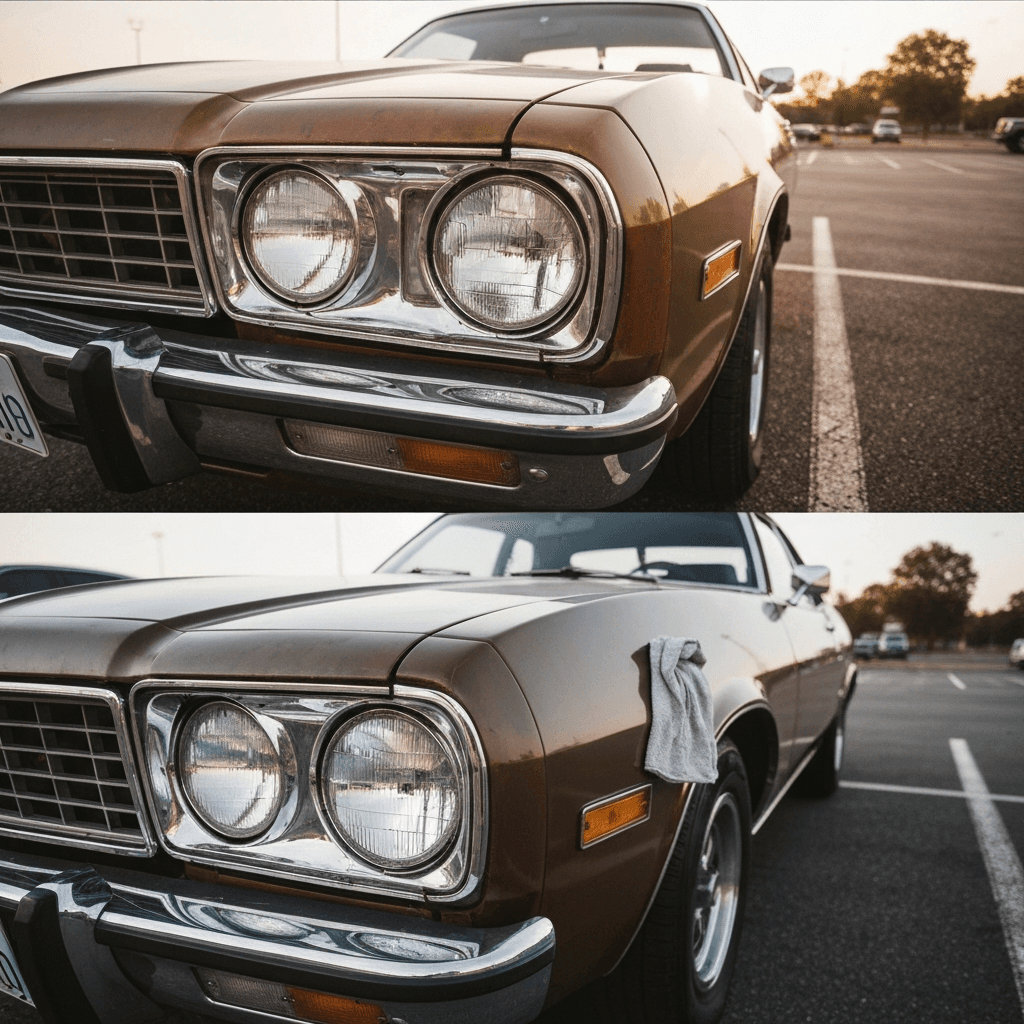 760はヘッドライトの黄ばみとボディの鉄粉が第一印象を損ねます。研磨+鉄粉除去クリーナー+ワックスで輝きを取り戻せば「程度良好」と判断され+4~7万円の効果。