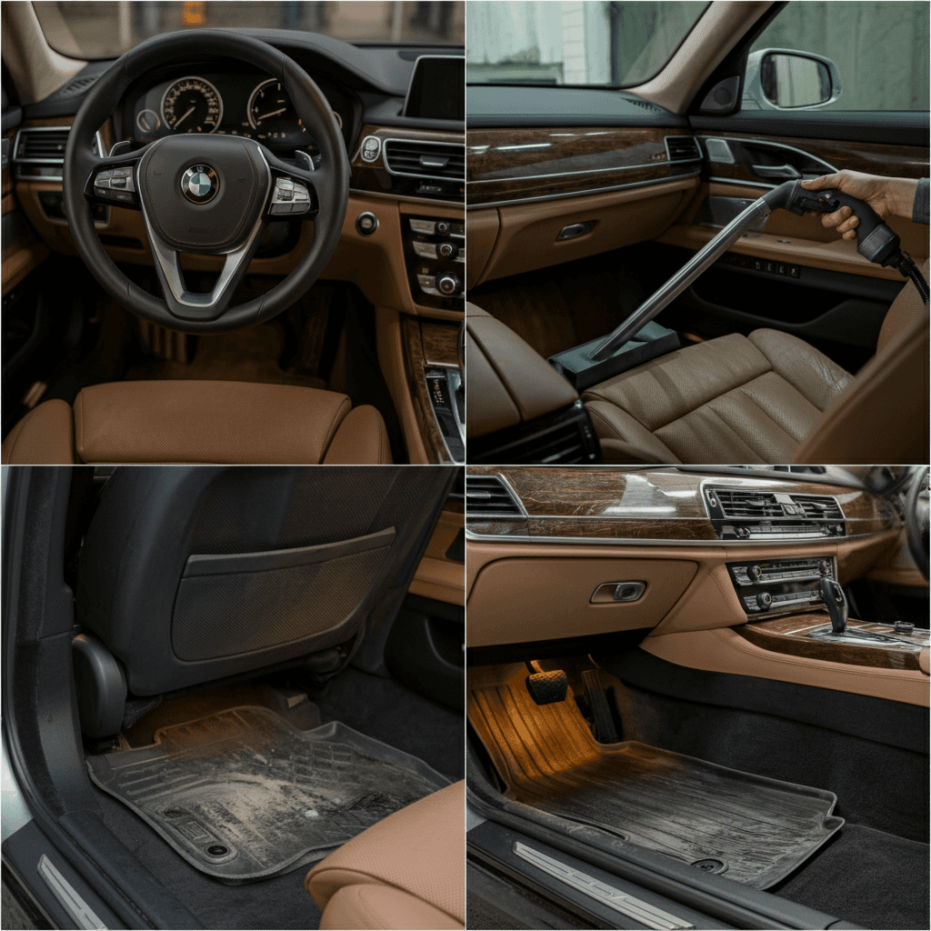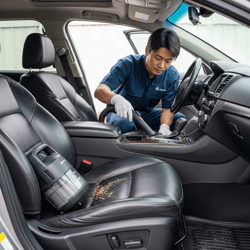 760エステートは第一印象が査定の8割を決めます。シート隙間のゴミ除去、マット洗浄、樹脂パーツ艶出しで新車級の清潔感に。特に臭いゼロなら「禁煙車」扱いで+5~8万円UP。