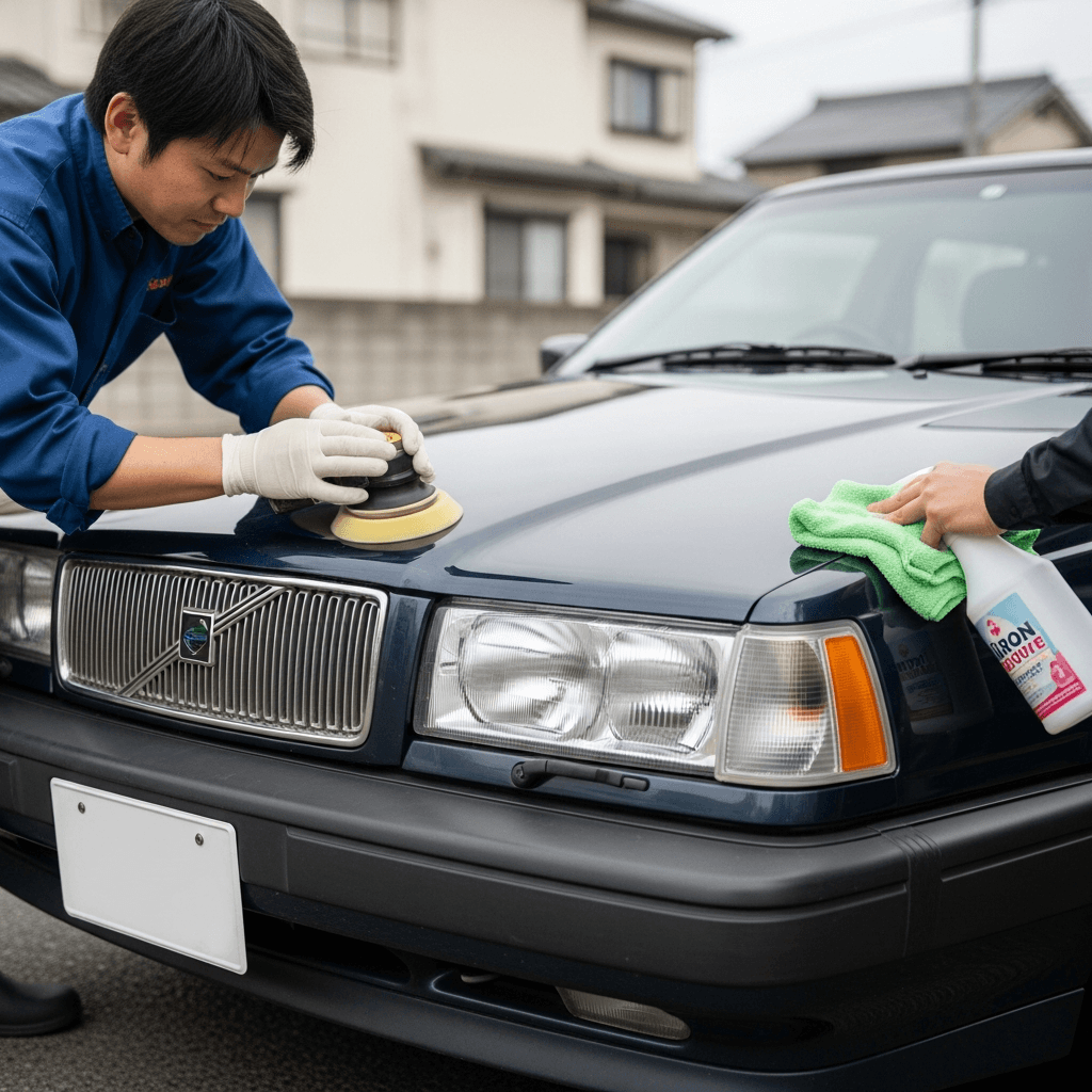 780はヘッドライトの黄ばみとボディの鉄粉が第一印象を損ねます。研磨+鉄粉除去クリーナー+ワックスで輝きを取り戻せば「程度良好」と判断され+4~7万円の効果。