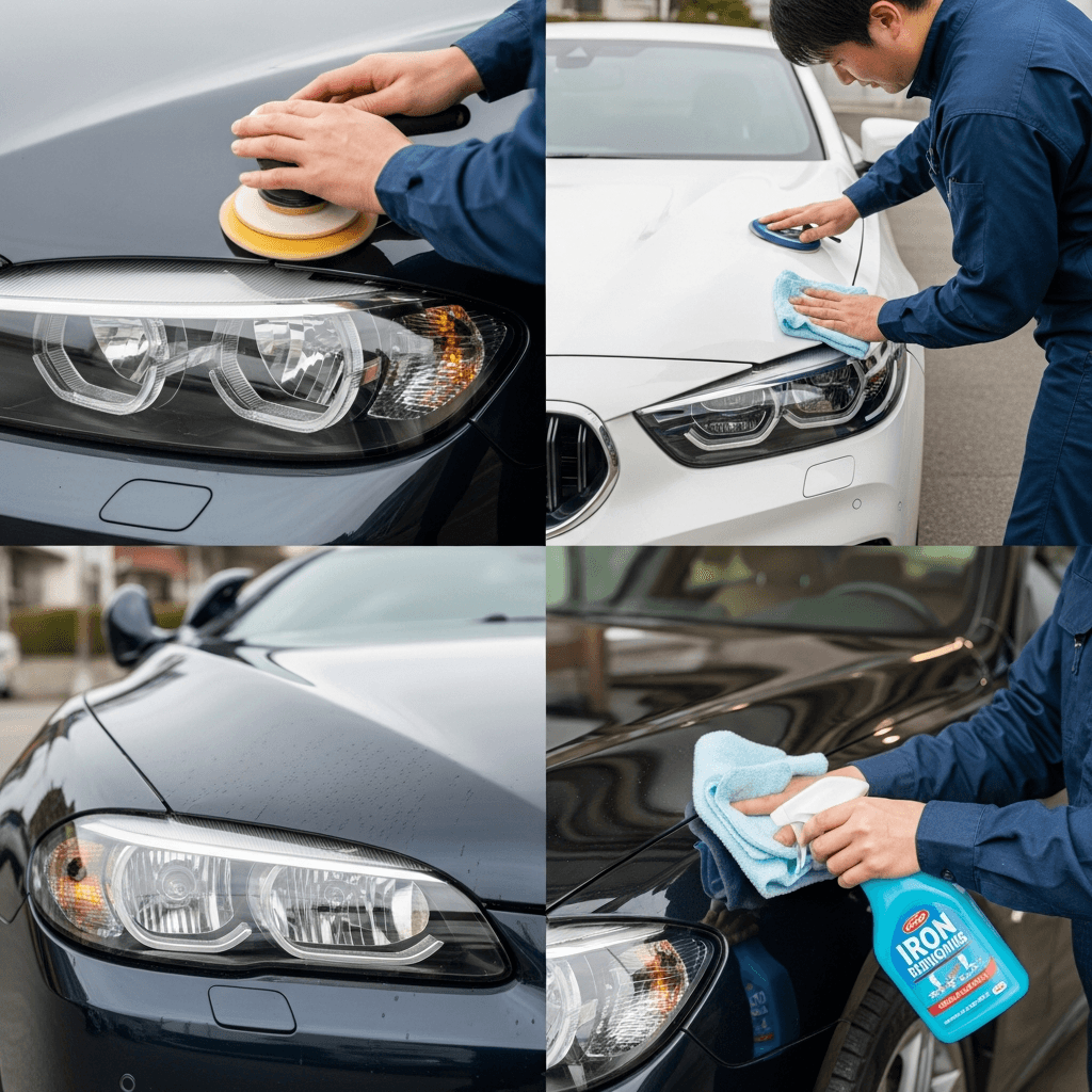 ヘッドライト黄ばみ除去+ボディ鉄粉除去で輝き復活!