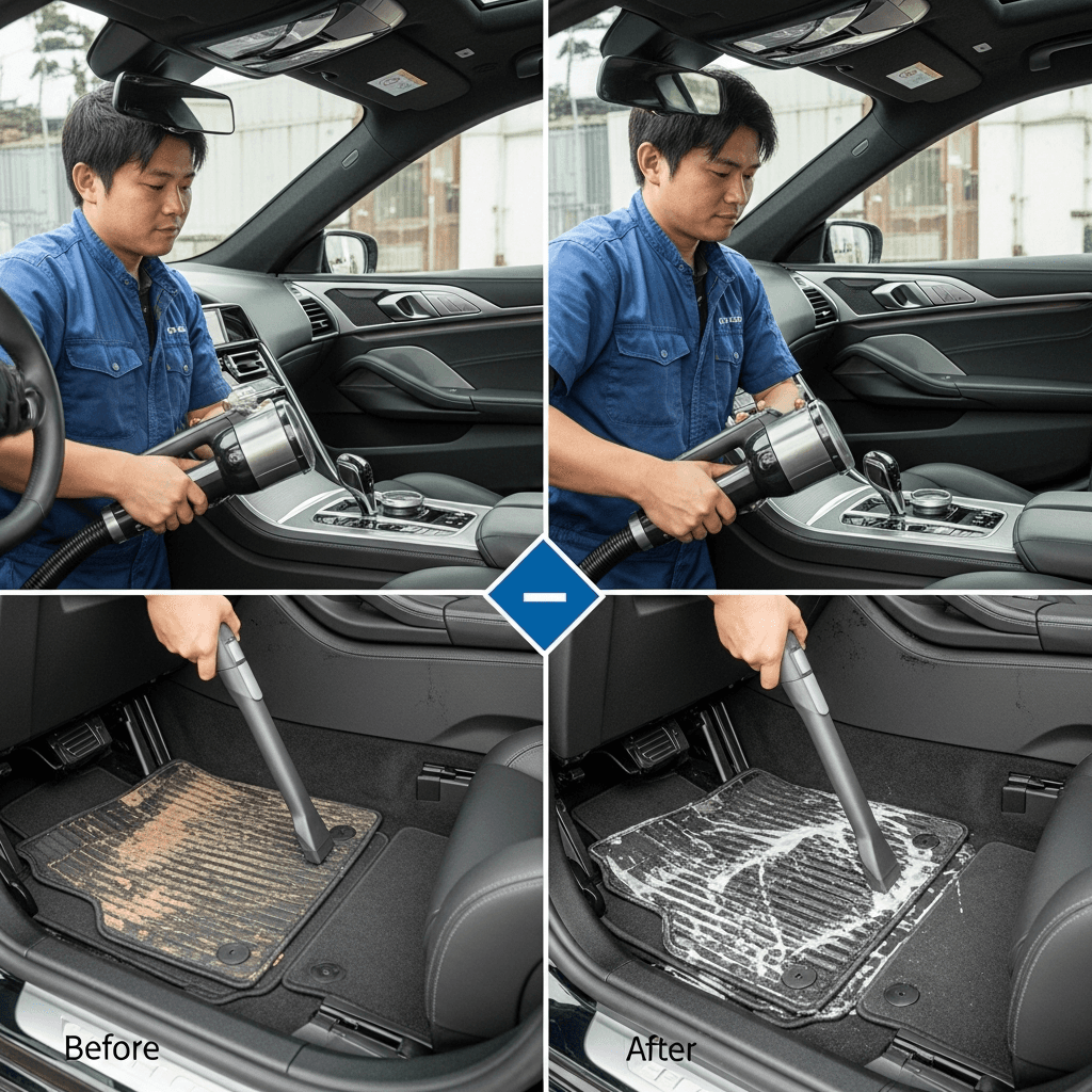 8シリーズは第一印象が査定の8割を決めます。シート隙間のゴミ除去、マット洗浄、樹脂パーツ艶出しで新車級の清潔感に。特に臭いゼロなら「禁煙車」扱いで+5~8万円UP。