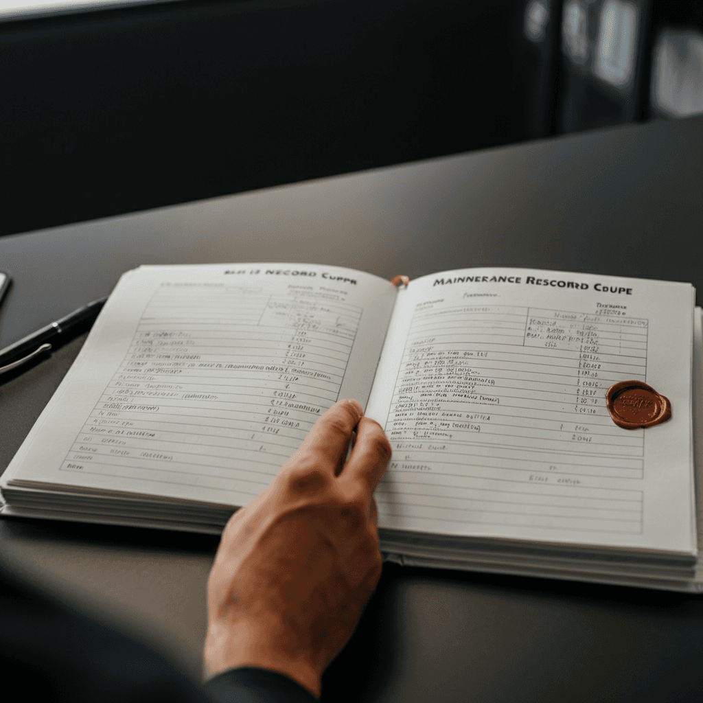 8シリーズグランクーペの整備記録簿に定期点検(12ヶ月・24ヶ月)の履歴が全て記載されていれば「管理の行き届いた車」と高評価。特にエンジンオイル交換履歴は重要で+6~9万円の効果。