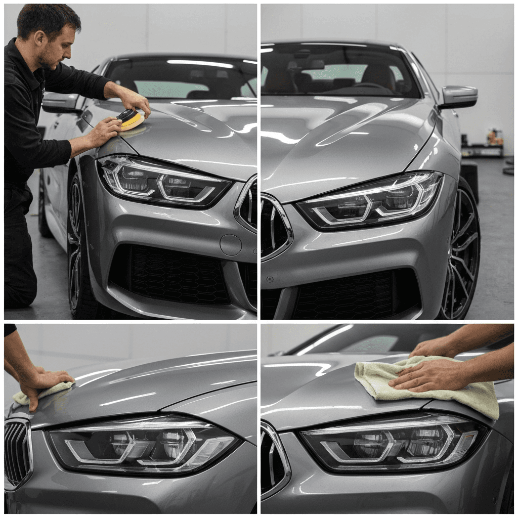 8シリーズグランクーペはヘッドライトの黄ばみとボディの鉄粉が第一印象を損ねます。研磨+鉄粉除去クリーナー+ワックスで輝きを取り戻せば「程度良好」と判断され+4~7万円の効果。