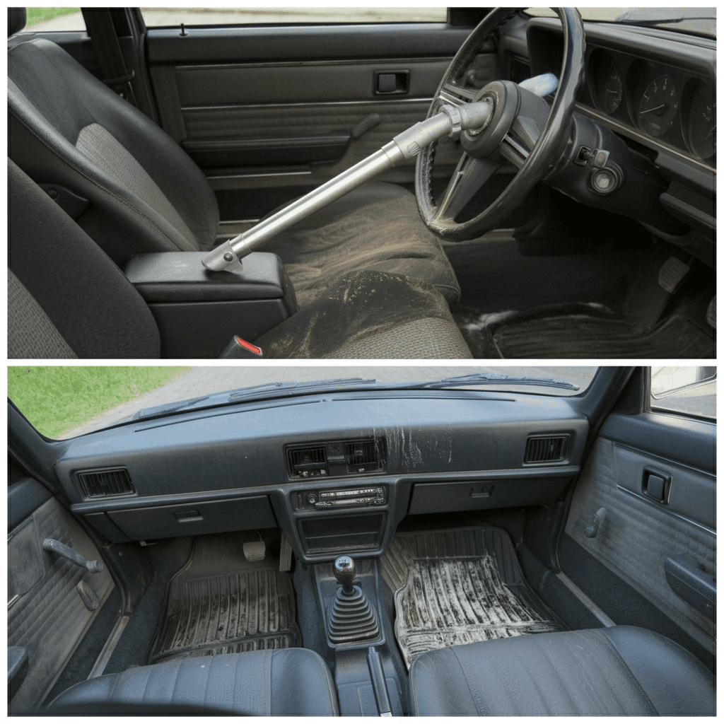 80は第一印象が査定の8割を決めます。シート隙間のゴミ除去、マット洗浄、樹脂パーツ艶出しで新車級の清潔感に。特に臭いゼロなら「禁煙車」扱いで+5~8万円UP。