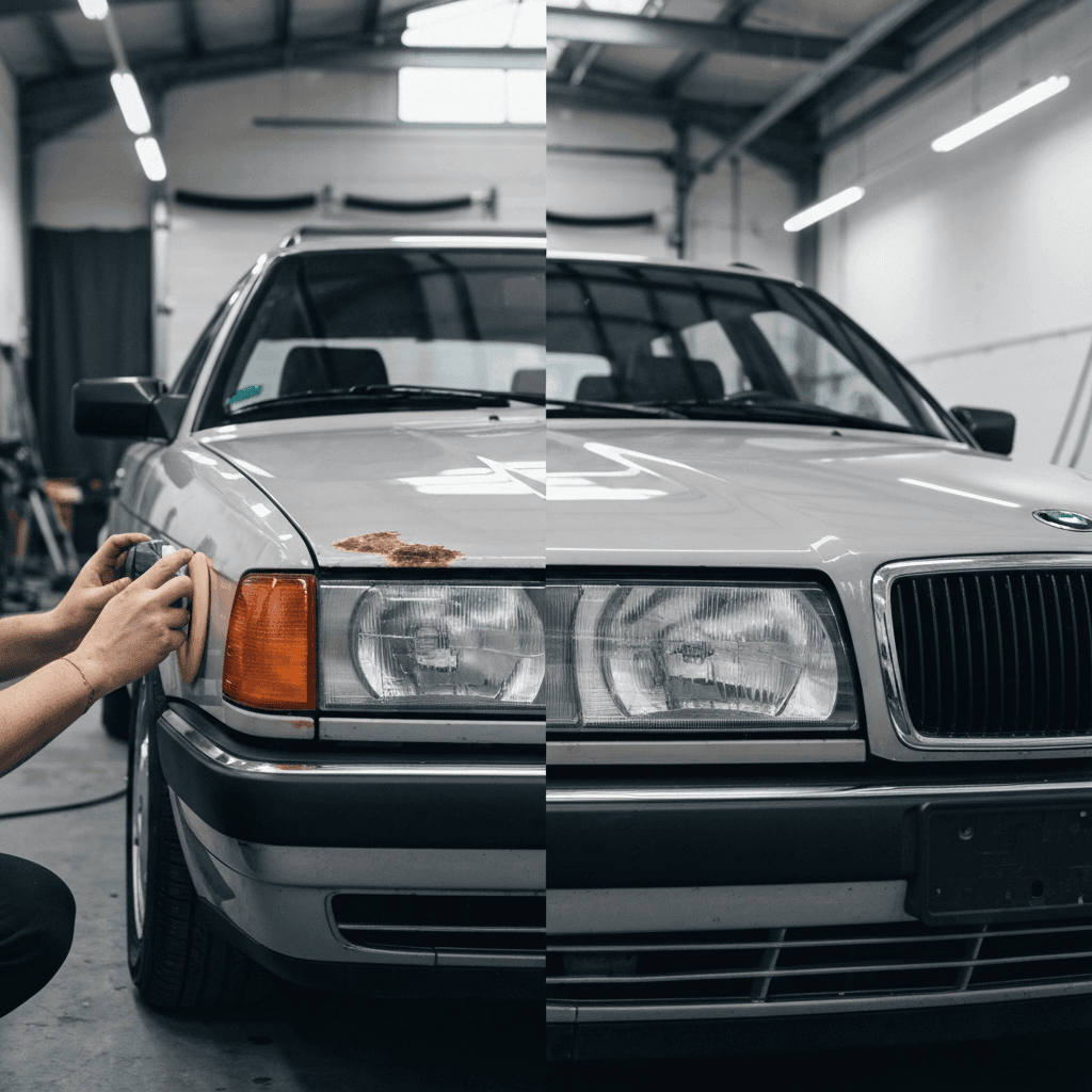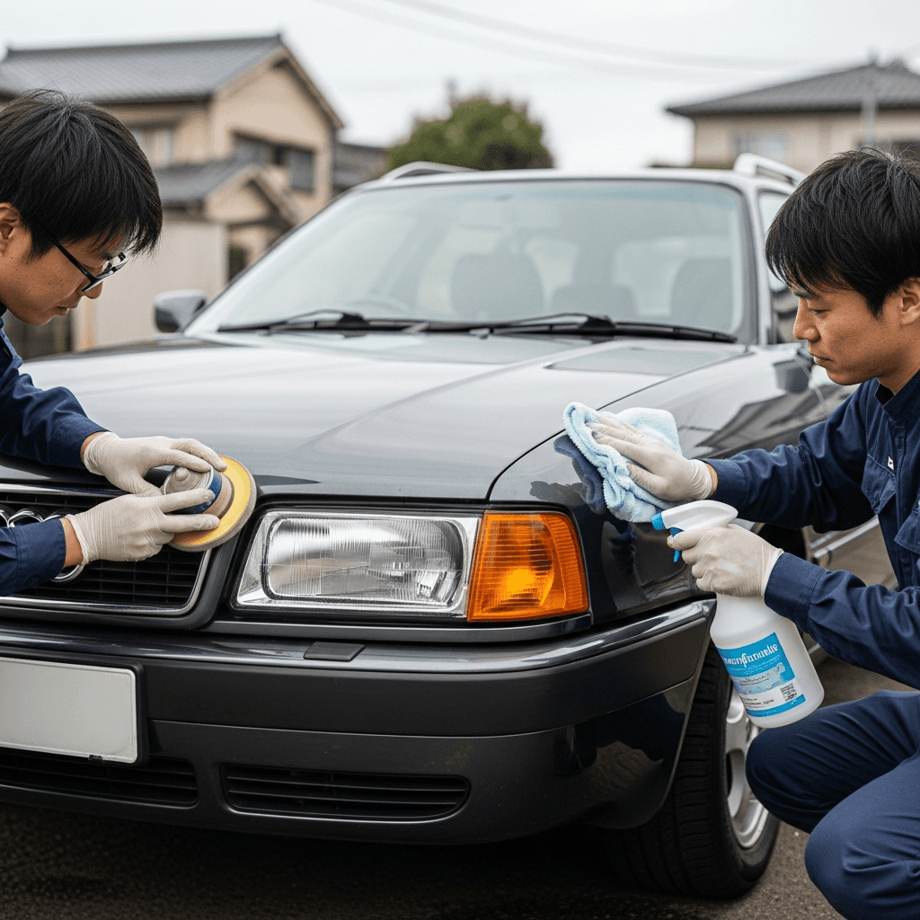 80アバントはヘッドライトの黄ばみとボディの鉄粉が第一印象を損ねます。研磨+鉄粉除去クリーナー+ワックスで輝きを取り戻せば「程度良好」と判断され+4~7万円の効果。