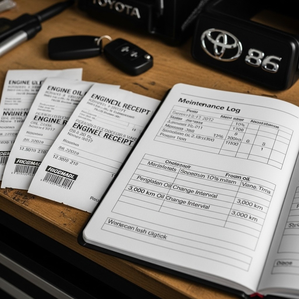 86はスポーツ走行を前提とした車。エンジンオイル交換を3,000~5,000km毎に実施した記録(レシート+整備記録簿)があれば「エンジン管理完璧」と評価され、査定額が大幅UP。+10~15万円の効果が期待できます。