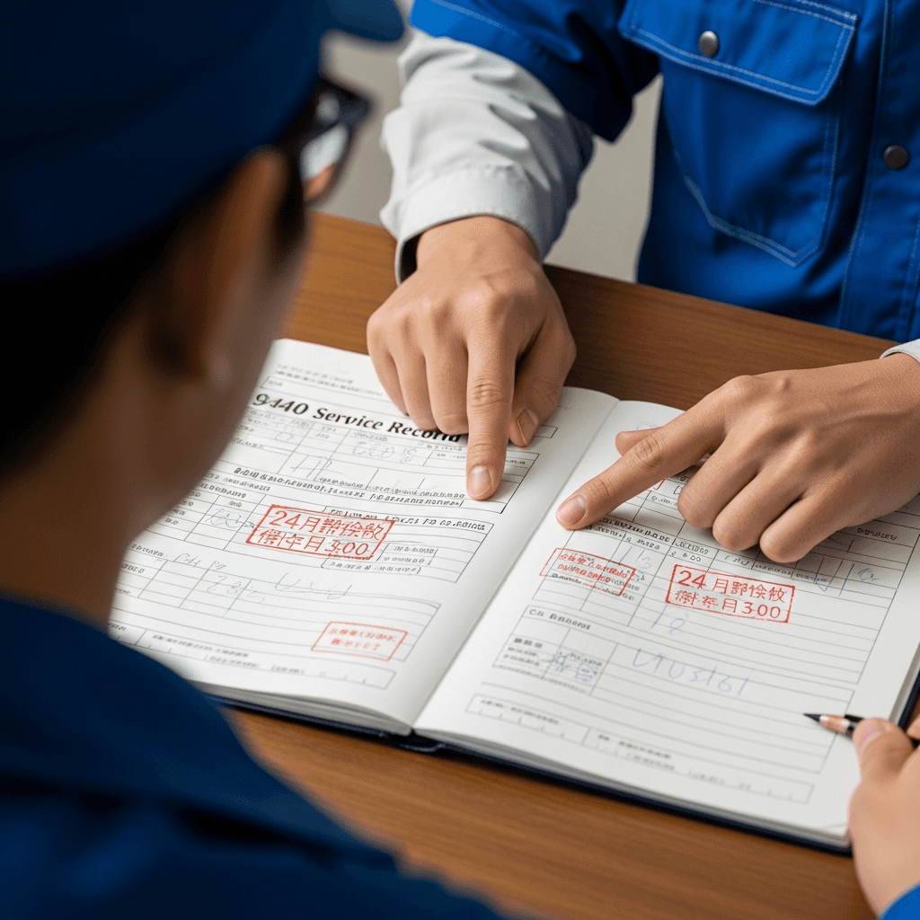 940の整備記録簿に定期点検(12ヶ月・24ヶ月)の履歴が全て記載されていれば「管理の行き届いた車」と高評価。特にエンジンオイル交換履歴は重要で+6~9万円の効果。