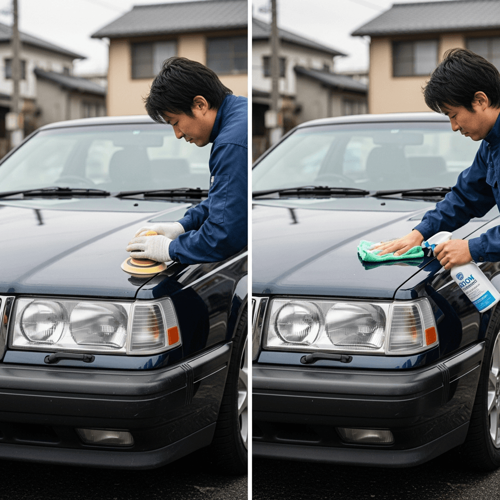 960はヘッドライトの黄ばみとボディの鉄粉が第一印象を損ねます。研磨+鉄粉除去クリーナー+ワックスで輝きを取り戻せば「程度良好」と判断され+4~7万円の効果。