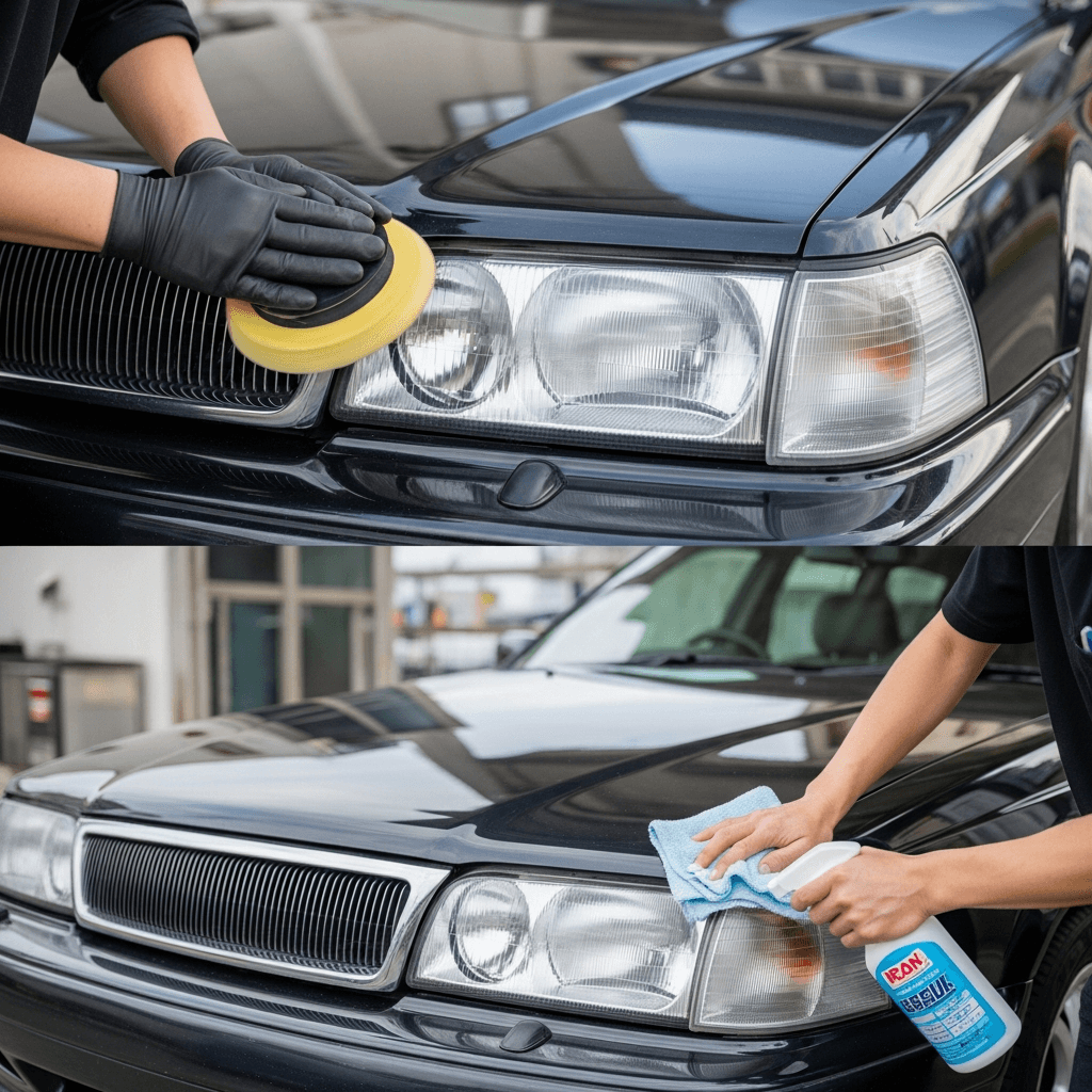 ヘッドライト黄ばみ除去+ボディ鉄粉除去で輝き復活!