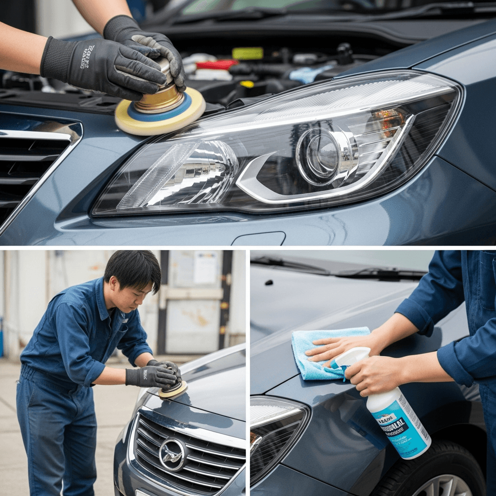 ヘッドライト黄ばみ除去+ボディ鉄粉除去で輝き復活!