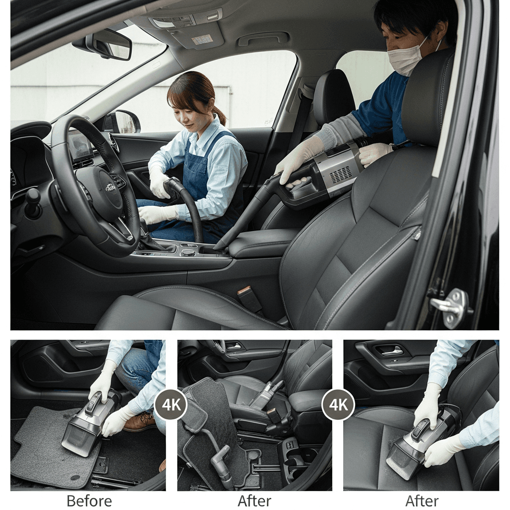 Aクラスセダンは第一印象が査定の8割を決めます。シート隙間のゴミ除去、マット洗浄、樹脂パーツ艶出しで新車級の清潔感に。特に臭いゼロなら「禁煙車」扱いで+5~8万円UP。