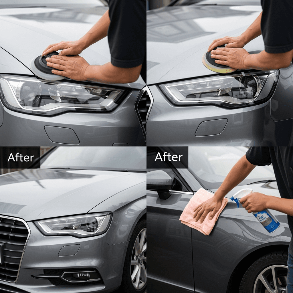 A3セダンはヘッドライトの黄ばみとボディの鉄粉が第一印象を損ねます。研磨+鉄粉除去クリーナー+ワックスで輝きを取り戻せば「程度良好」と判断され+4~7万円の効果。