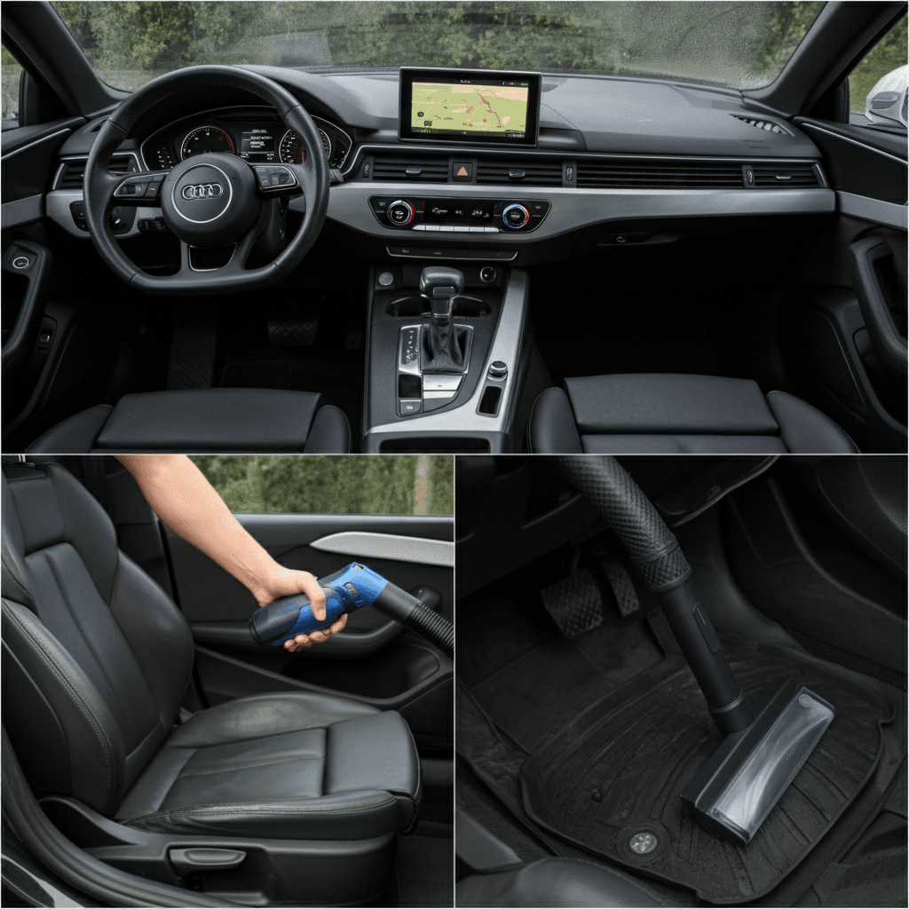 A5アバントは第一印象が査定の8割を決めます。シート隙間のゴミ除去、マット洗浄、樹脂パーツ艶出しで新車級の清潔感に。特に臭いゼロなら「禁煙車」扱いで+5~8万円UP。