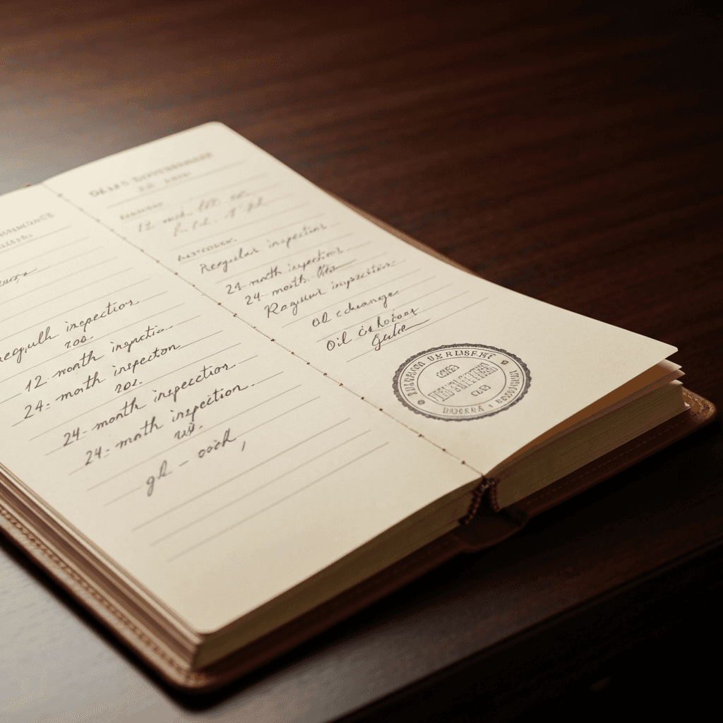 A5スポーツバックの整備記録簿に定期点検(12ヶ月・24ヶ月)の履歴が全て記載されていれば「管理の行き届いた車」と高評価。特にエンジンオイル交換履歴は重要で+6~9万円の効果。