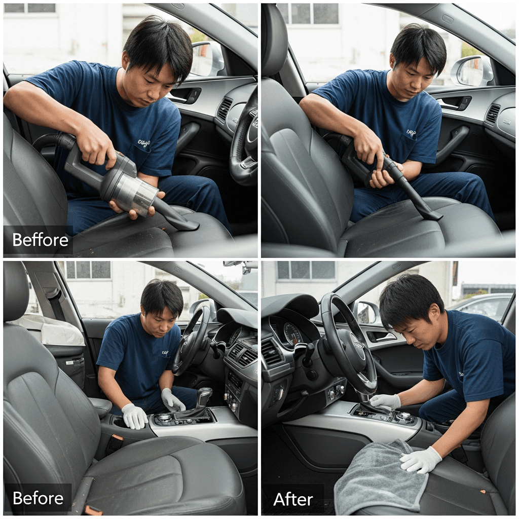 A6オールロードクワトロは第一印象が査定の8割を決めます。シート隙間のゴミ除去、マット洗浄、樹脂パーツ艶出しで新車級の清潔感に。特に臭いゼロなら「禁煙車」扱いで+5~8万円UP。
