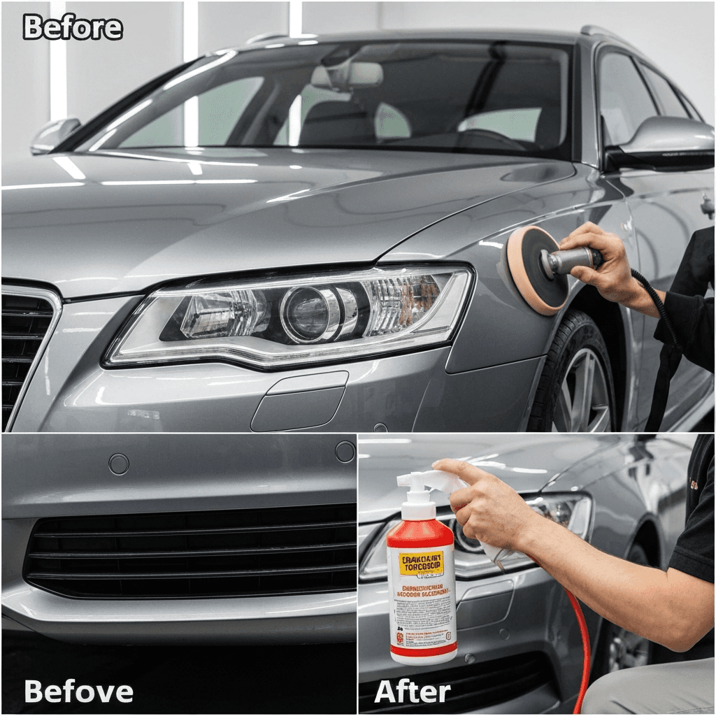 A6アバントe-tronはヘッドライトの黄ばみとボディの鉄粉が第一印象を損ねます。研磨+鉄粉除去クリーナー+ワックスで輝きを取り戻せば「程度良好」と判断され+4~7万円の効果。