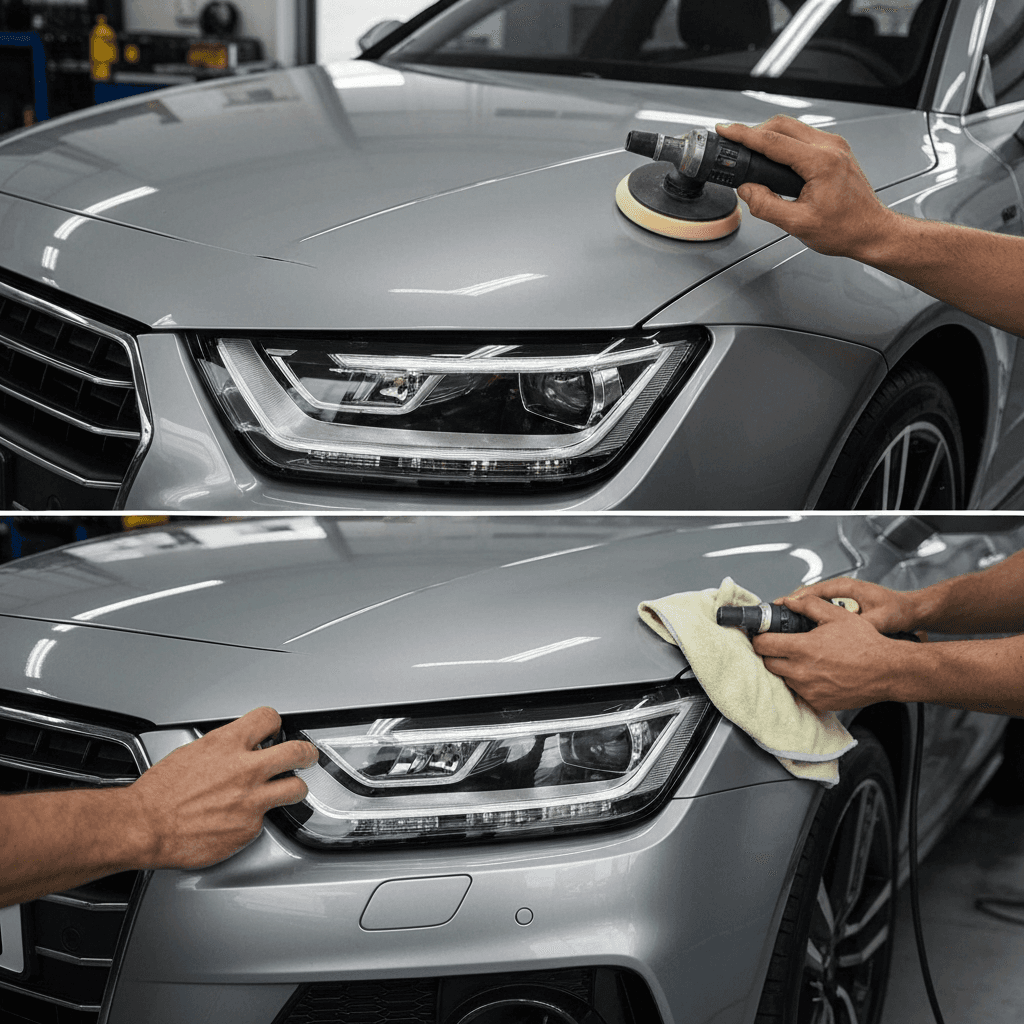 A7スポーツバックはヘッドライトの黄ばみとボディの鉄粉が第一印象を損ねます。研磨+鉄粉除去クリーナー+ワックスで輝きを取り戻せば「程度良好」と判断され+4~7万円の効果。