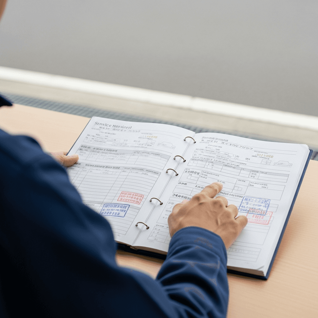 A8の整備記録簿に定期点検(12ヶ月・24ヶ月)の履歴が全て記載されていれば「管理の行き届いた車」と高評価。特にエンジンオイル交換履歴は重要で+6~9万円の効果。