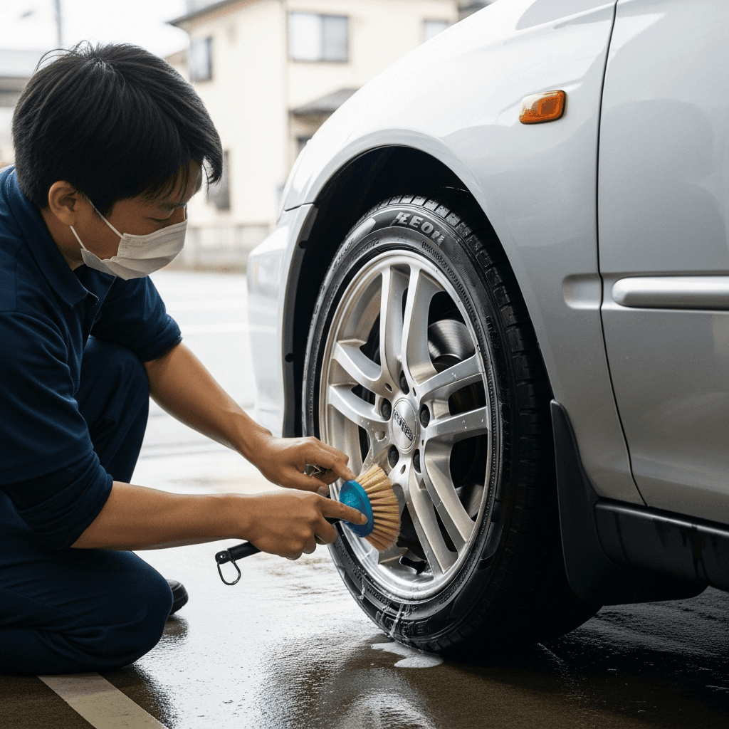 セダンは純正アルミホイールの傷が目立ちやすい。ホイールクリーナーで洗浄+タイヤ溝5mm以上確保で「足回り良好」評価。特にアコードCAは高級感が重要で+6~9万円の効果。