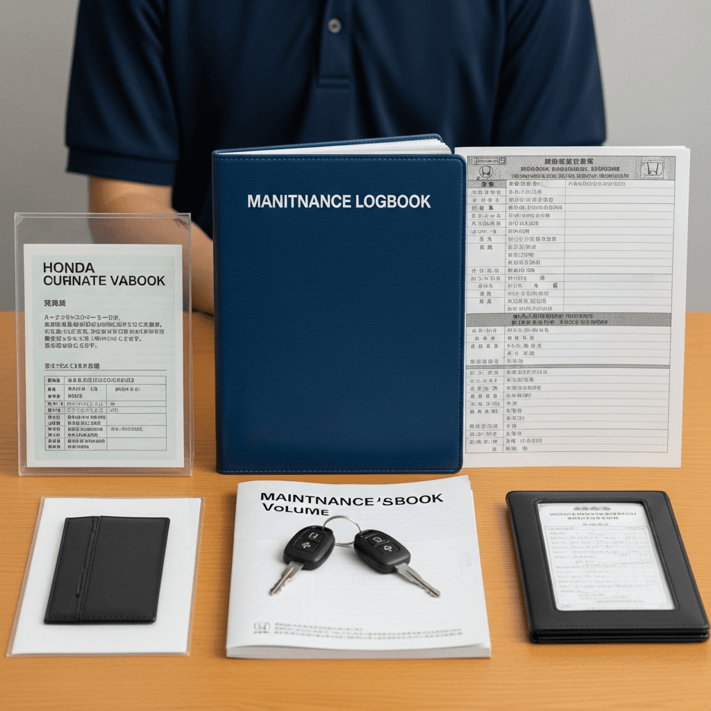 アコードCAは高級セダンとして書類完備が必須。整備記録簿、取扱説明書、スペアキー2本が揃っていれば「ワンオーナー級の管理」で+4~7万円UP。特にスペアキーは重要。