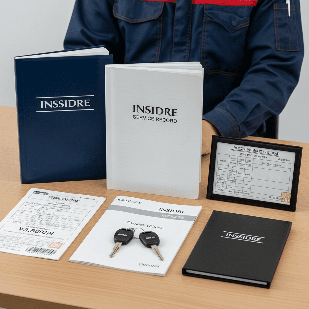 アコードインスパイアは高級セダンとして書類完備が必須。整備記録簿、取扱説明書、スペアキー2本が揃っていれば「ワンオーナー級の管理」で+4~7万円UP。特にスペアキーは重要。