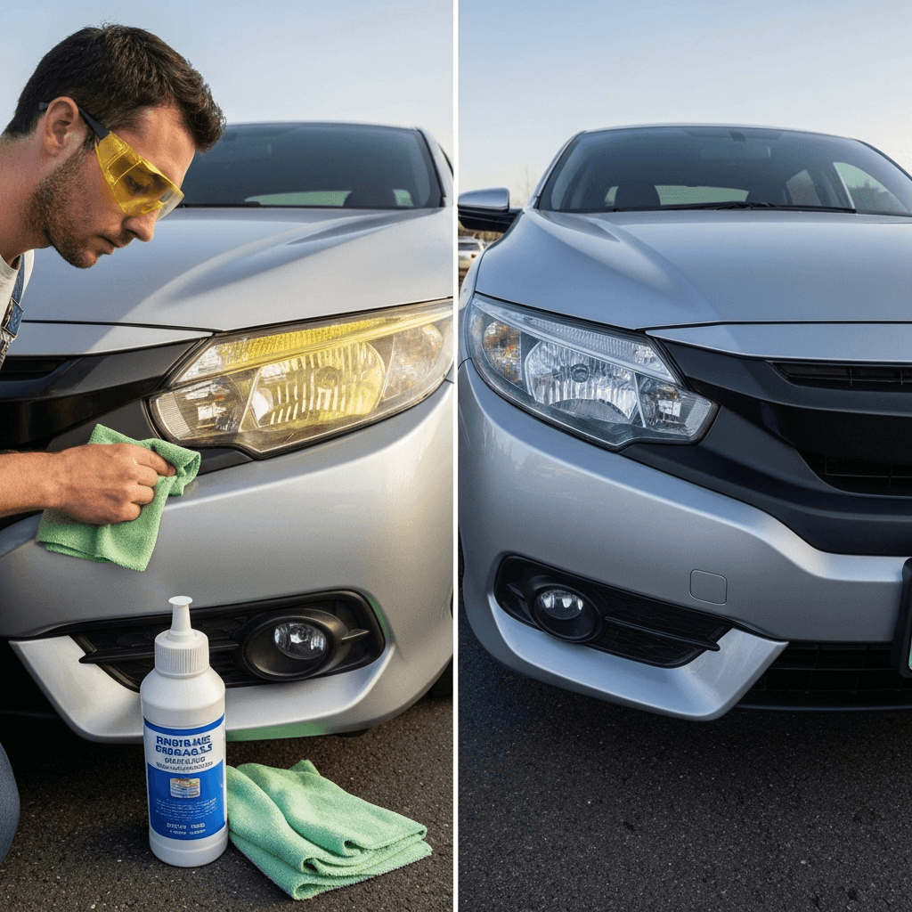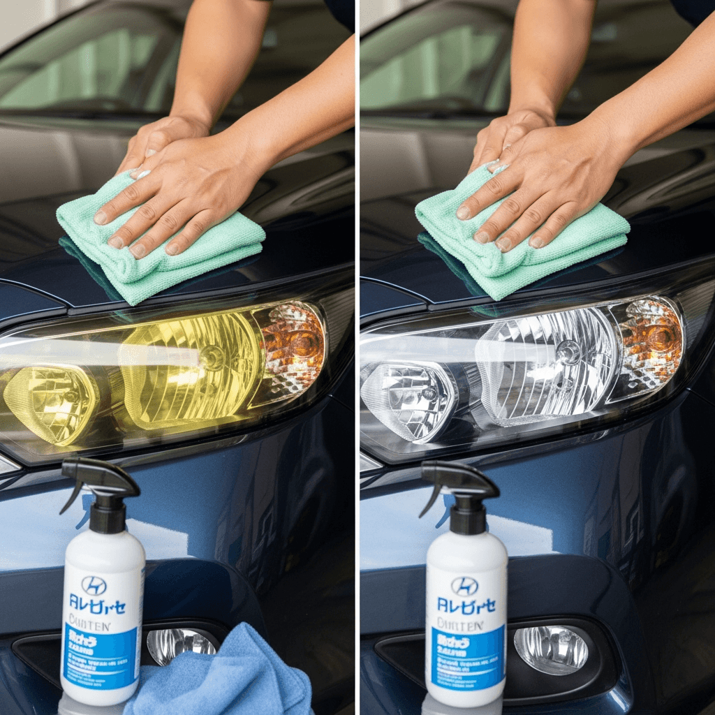 ヘッドライト黄ばみ除去で新車の輝きを取り戻す!