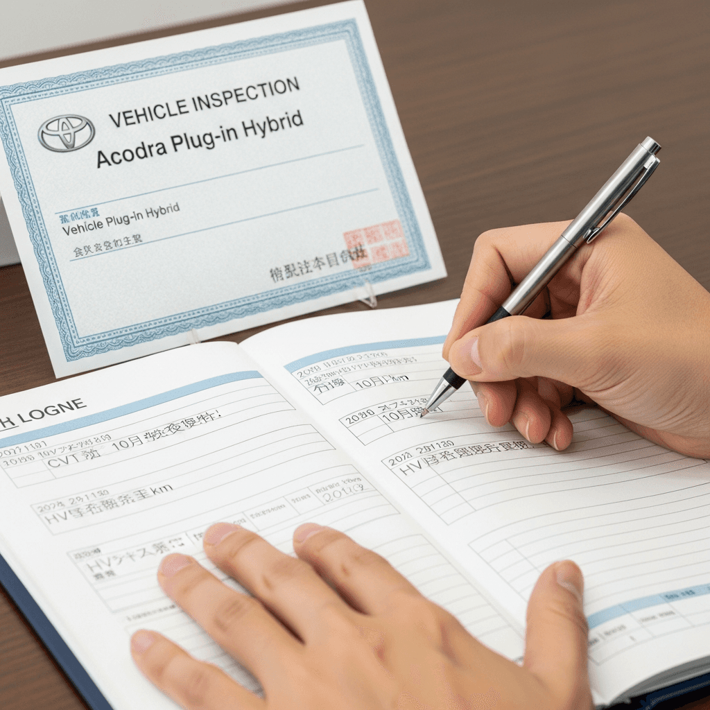 整備記録簿にCVTフルード交換やHVシステム診断の履歴を明記。特に「10万km時CVT交換済」「バッテリー冷却系点検済」の記載があれば査定士の信頼度が急上昇し、+6~10万円の価値創出が可能です。