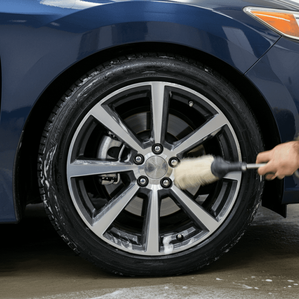 セダンは純正アルミホイールの傷が目立ちやすい。ホイールクリーナーで洗浄+タイヤ溝5mm以上確保で「足回り良好」評価。特にアコードツアラーは高級感が重要で+6~9万円の効果。