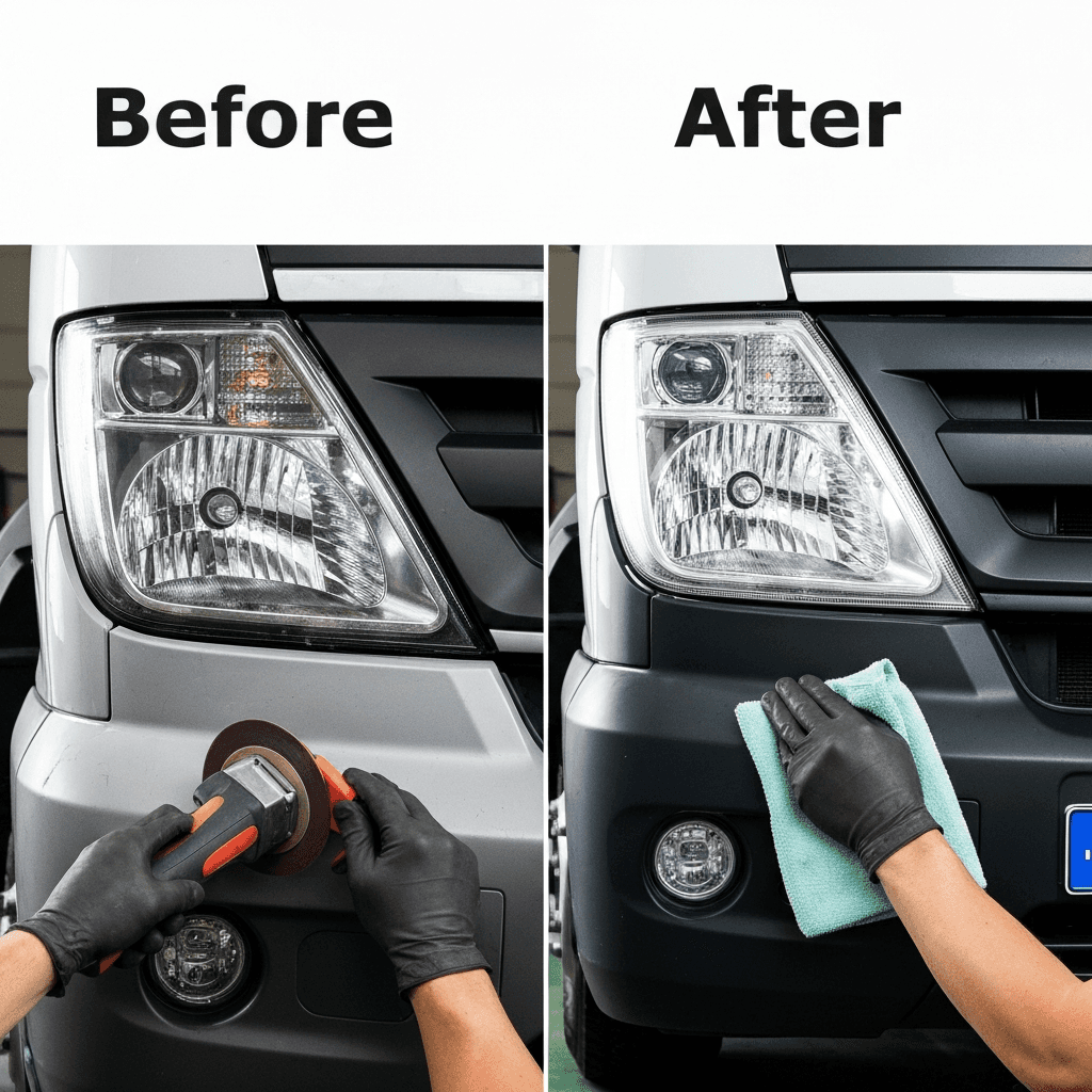アクティトラックはヘッドライトの黄ばみとボディの鉄粉が第一印象を損ねます。研磨+鉄粉除去クリーナー+ワックスで輝きを取り戻せば「程度良好」と判断され+4~7万円の効果。